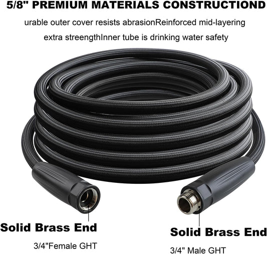 HQMPC Garden Hose 5/8"IDx30' Hose Light Weight Durable Non Kinking Water Hose Feamle Swivel Grip With Brass Hose Fittings 30 FEET (Black)