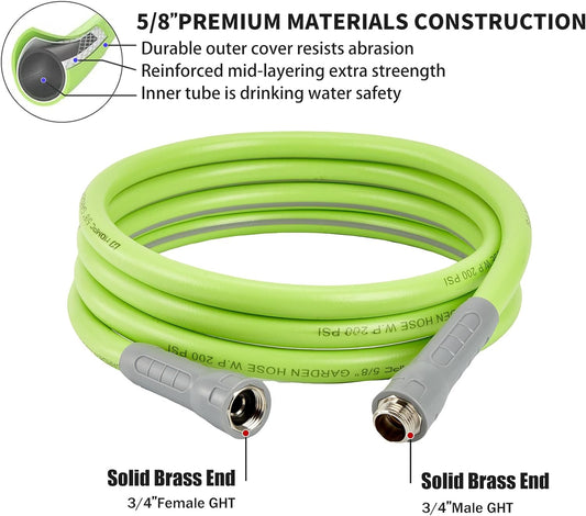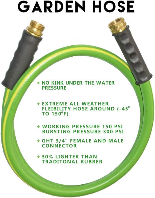 HQMPC Hose Garden Hose With Swivel Grip 5/8 in. Water Hose Heavy Duty Durable Material Water Hose with Solid Fittings (Green)