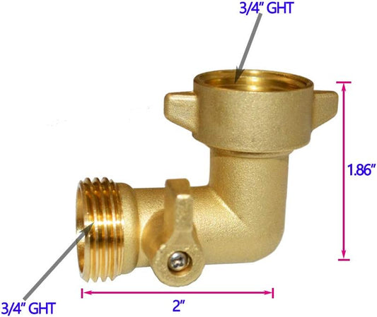 HQMPC 90 Degree Garden Hose Elbow with Shut Off Valve Hose Elbow 3/4" GHT Garden Hose Elbow Brass Garden Hose RV Adapter Water Hose 90 Degree Eelbow With 4 Pcs Washers